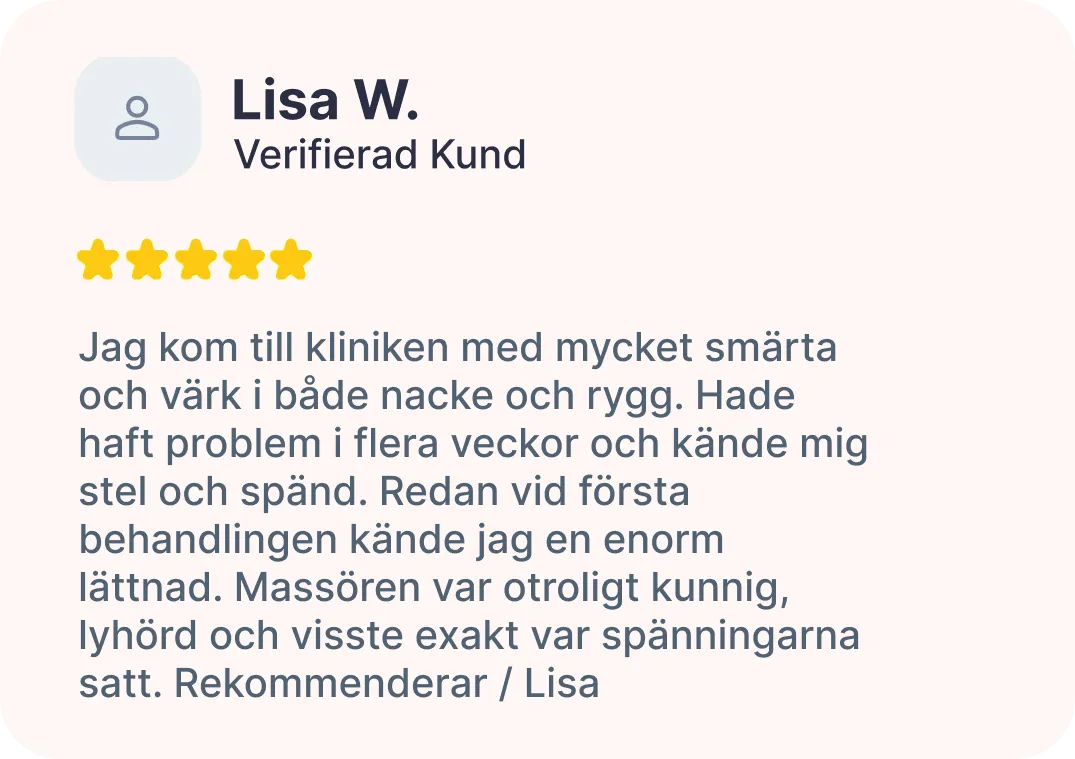 Redan efter första behandlingen känner du en tydlig skillnad – mindre smärta, bättre rörlighet och en härligt avslappnad känsla i hela kroppen.